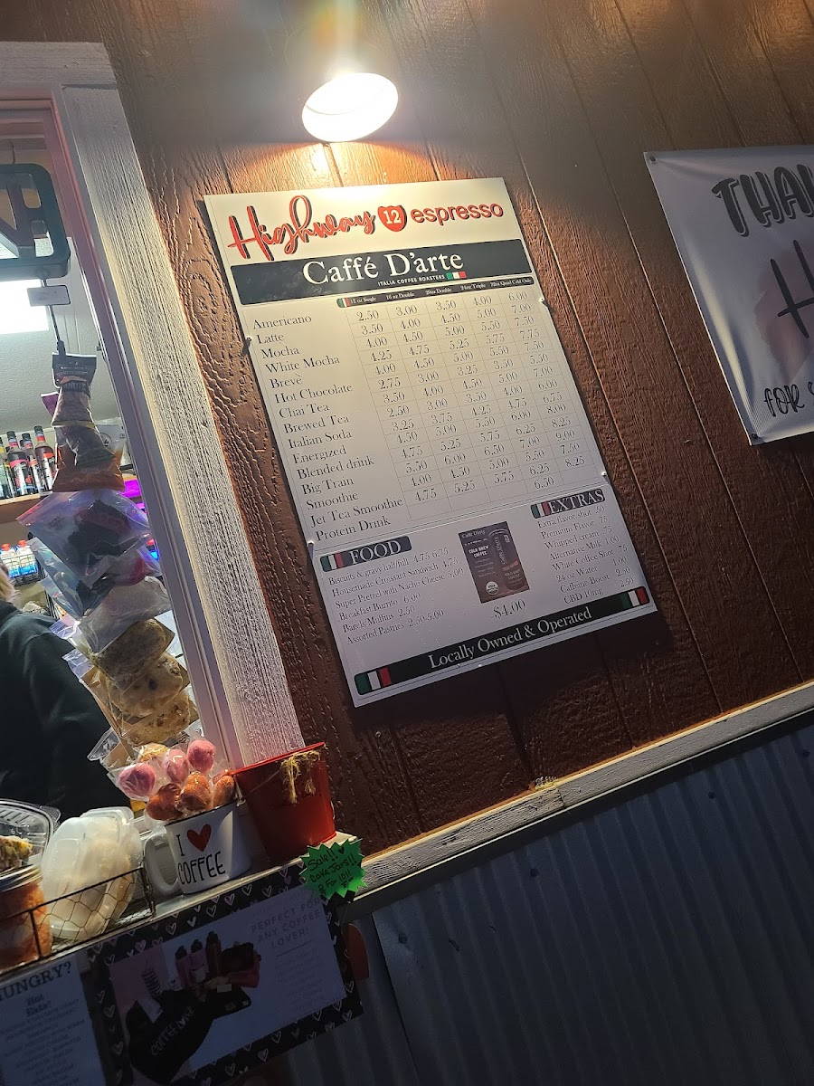Highway 12 Espresso Menu